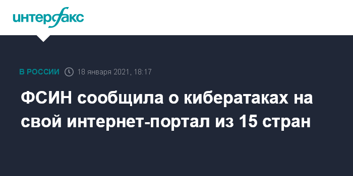 Москва. 18 января. INTERFAX.RU - Федеральная служба исполнения наказаний (ФСИН) сообщает о мощной хакерской атаке на сайт ведомства, произведенной накануне сразу из более чем полутора десятков стран.