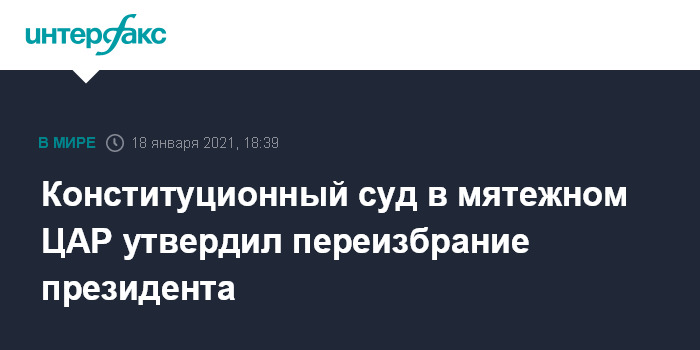 Москва. 18 января. INTERFAX.RU - Конституционный суд ЦАР в понедельник утвердил переизбрание президента страны Фостена Арканжа Туадеры, сообщают франкоязычные СМИ.