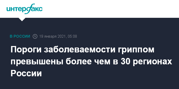 Москва. 19 января. INTERFAX.RU - Недельные пороги заболеваемости гриппом и ОРВИ превышены в 32-х российских субъектах, сообщает во вторник сайт Роспотребнадзора.
