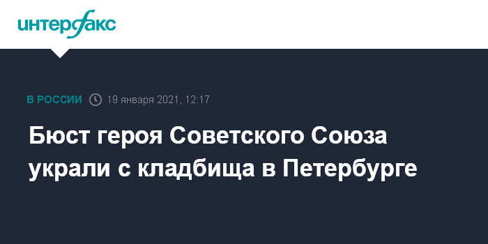 Бюст героя Советского Союза украли с кладбища в Петербурге