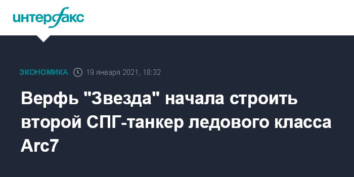 Москва. 19 января. INTERFAX.RU - Судостроительный комплекс "Звезда" приступил к строительству второго танкера-газовоза СПГ ледового класса Arc7, сообщается на сайте "Роснефти".