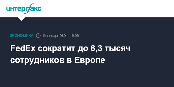 Москва. 19 января. INTERFAX.RU - Американская FedEx Corp, одна из крупнейших в мире транспортно-логистических компаний, намерена сократить от 5,5 тысяч до 6,3 тысяч рабочих мест в Европе в рамках завершения интеграции TNT Express.
