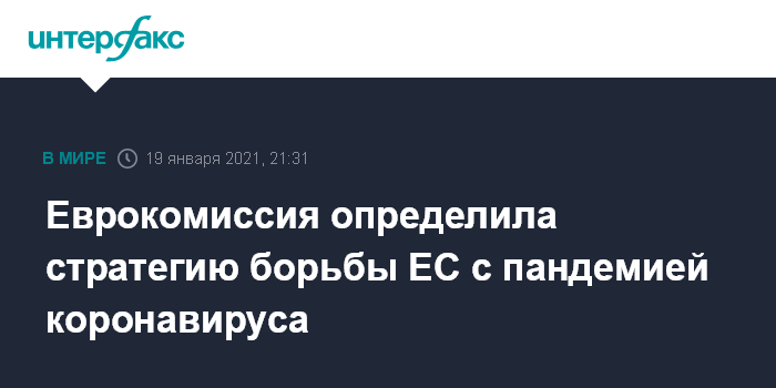 Москва. 19 января. INTERFAX.RU - Европейская комиссия (ЕК) призвала во вторник государства-члены ЕС ускорить проведение вакцинации населения от коронавируса COVID-19 по всему союзу в рамках борьбы с пандемией.