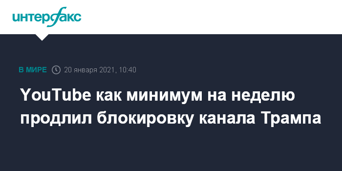 12 января YouTube сообщил о замораживании на неделю канала Трампа за нарушение политики платформы.
