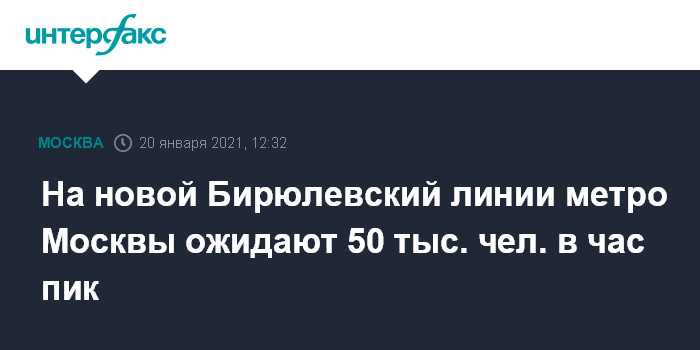 Москва. 20 января. INTERFAX.RU - В зоне влияния будущей Бирюлевской линии метро проживает и работает более 700 тысяч человек, рассказал в интервью "Интерфаксу" заместитель директора Института Генплана Москвы Игорь Бахирев.