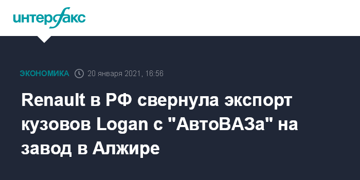 Renault в РФ свернула экспорт кузовов Logan с "АвтоВАЗа" на завод в Алжире