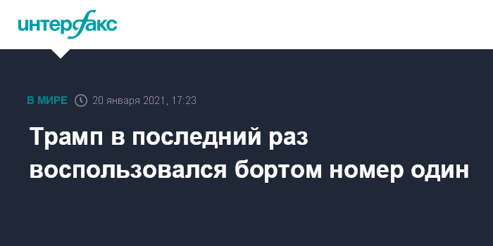 Москва. 20 января. INTERFAX.RU - Уходящий президент США Дональд Трамп в последний раз воспользовался бортом номер один: он вылетел с авиабазе Эндрюс, где попрощался со своими сторонниками, во Флориду, где находится его резидеция Мар-а-Лаго, сообщает CNN.