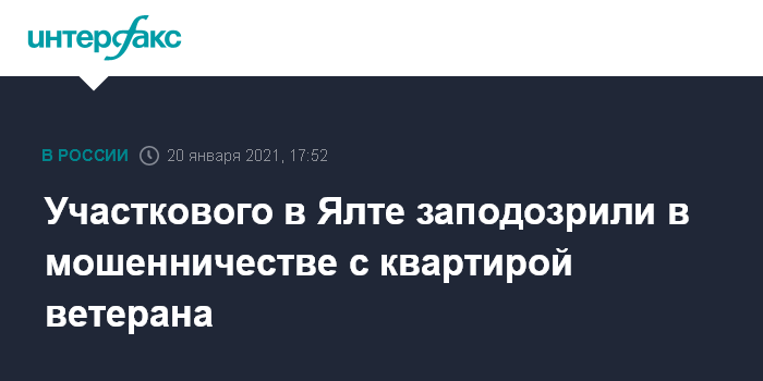 По данным СКР, участковый предоставил в ялтинское подразделение Госкомрегистра фиктивный договор пожизненного содержания пожилой женщины и другие документы, после чего квартира перешла в его владение. Следователи оценили причиненный ветерану ущерб в 7 млн рублей, они намерены восстановить ее права на жилье.