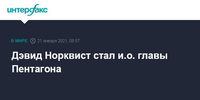 Москва. 21 января. INTERFAX.RU - В администрации президента США Джо Байдена назначили Дэвида Норквиста и.о. главы Пентагона, сообщают американские СМИ.