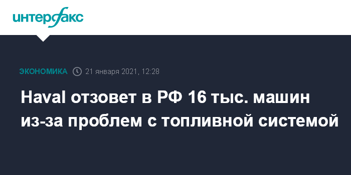 Haval отзовет в РФ 16 тыс. машин из-за проблем с топливной системой