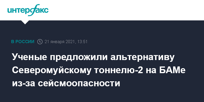 Москва. 21 января. INTERFAX.RU - Ученые РАН обратились в РЖД и правительство РФ с предложением пересмотреть проект строительства второго Северомуйского тоннеля на Байкало-Амурской магистрали (БАМ) и проложить трассу по ландшафту, а не под землей.