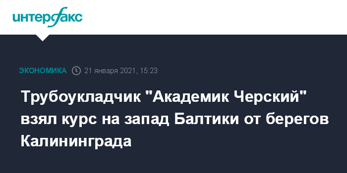 Москва. 21 января. INTERFAX.RU - Российский трубоукладчик "Академик Черский" взял курс на запад Балтики от берегов Калининграда, свидетельствуют данные системы позиционирования морских судов.