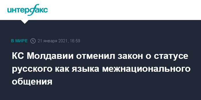 Москва. 21 января. INTERFAX.RU - Конституционный суд Молдавии признал неконституционным закон о функционировании языков и статусе русского языка. Такое решение КС принял в четверг по запросу трех депутатов от оппозиции.