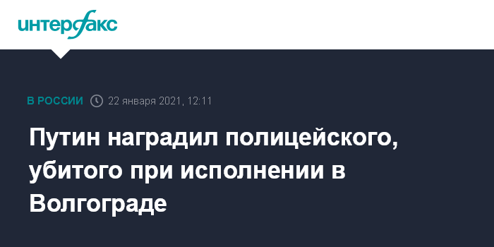 Путин наградил полицейского, убитого при исполнении в Волгограде