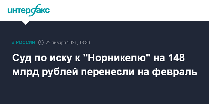Суд по иску к "Норникелю" на 148 млрд рублей перенесли на февраль