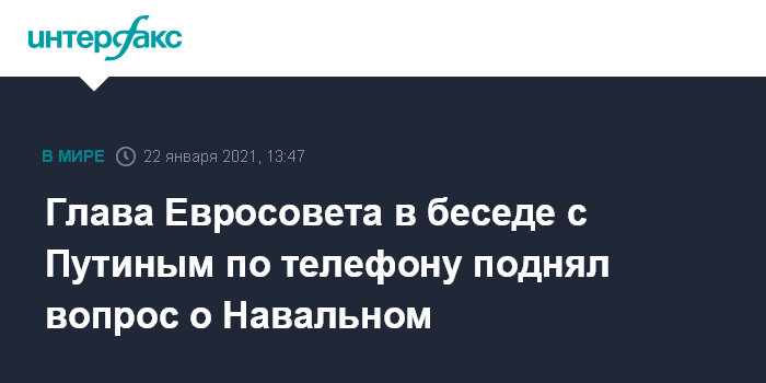 "Председатель Европейского совета проинформировал президента Путина о серьезной обеспокоенности ЕС и его государств-членов последними событиями и призвал полностью и безоговорочно уважать права Алексея Навального", - говорится в коммюнике, опубликованном в Брюсселе.