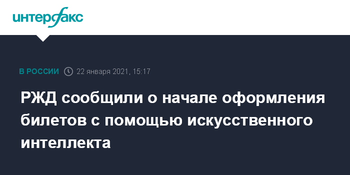 РЖД сообщили о начале оформления билетов с помощью искусственного интеллекта