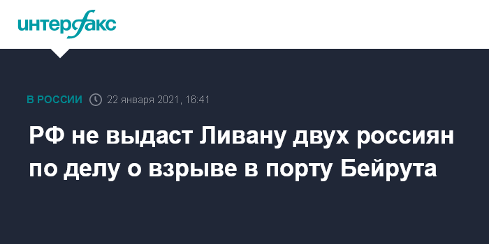 РФ не выдаст Ливану двух россиян по делу о взрыве в порту Бейрута