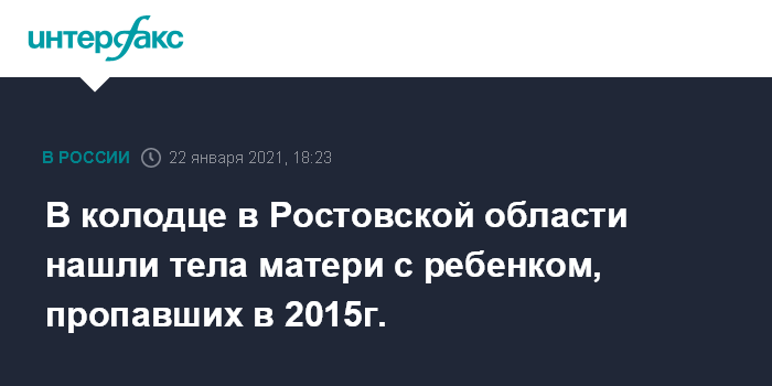 В колодце в Ростовской области нашли тела матери с ребенком, пропавших в 2015г.