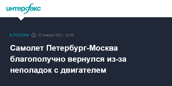 Самолет Петербург-Москва благополучно вернулся из-за неполадок с двигателем