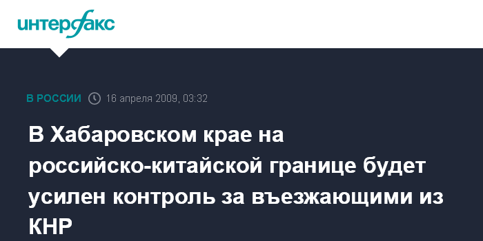 Хабаровск. 16 апреля. ИНТЕРФАКС - ДАЛЬНИЙ ВОСТОК - На пограничных пунктах пропуска в Хабаровском крае будет усилен контроль за въезжающими гражданами с территории Китая.