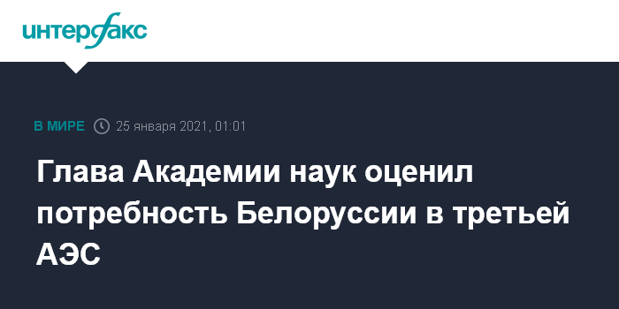 Москва. 24 января. INTERFAX.RU - В Белоруссии через 20-25 лет будет необходимость и в третьей атомной станции, заявил председатель президиума Национальной академии наук (НАН) Владимир Гусаков в эфире телеканала СТВ в воскресенье.