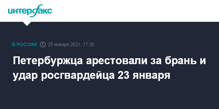 Петербуржца арестовали за брань и удар росгвардейца 23 января