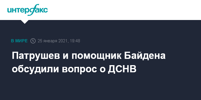 Патрушев и помощник Байдена обсудили вопрос о ДСНВ