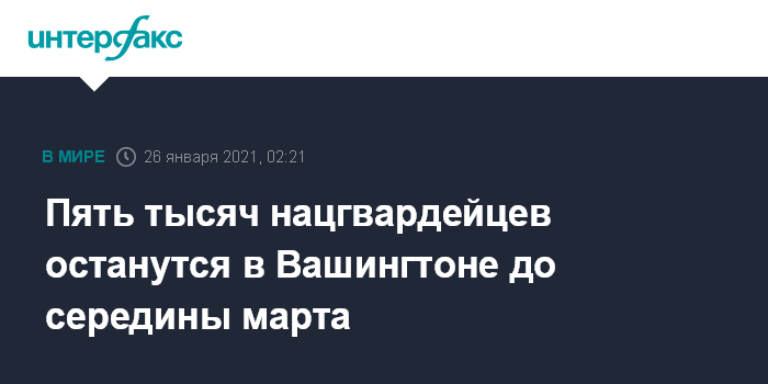 Ранее сообщалось, что в американской администрации обсуждают возможность сохранения присутствия тысяч служащих национальной гвардии в Вашингтоне до марта.