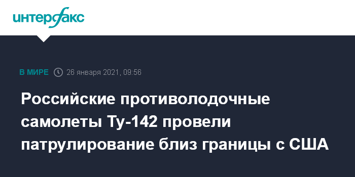Там отметили, что 26 января пара дальних противолодочных самолётов Ту-142МЗ выполнила плановый полёт над акваториями Берингова и Чукотского морей. Самолеты находились в воздухе более 11 часов. За это время они преодолели более 8 тыс. километров.