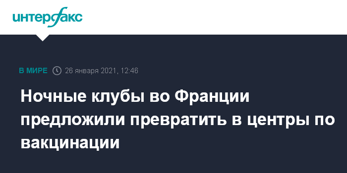 Москва. 26 января. INTERFAX.RU - Закрытые уже почти год танцполы в ночных клубах Франции в недалеком будущем могут начать использовать в качестве центров вакцинации от коронавируса COVID-19, сообщают французские СМИ.
