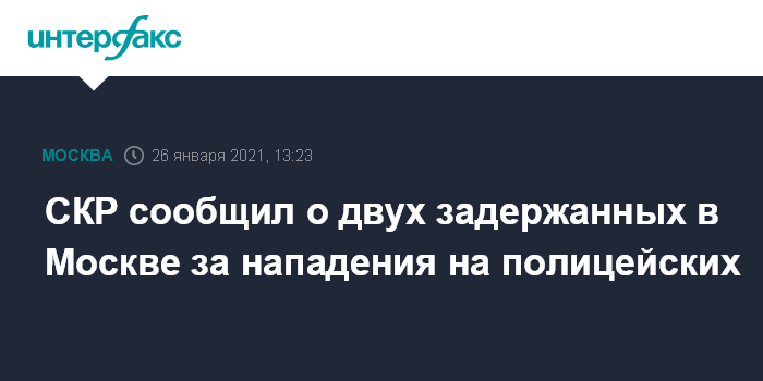 Москва. 26 января. INTERFAX.RU - В Москве задержаны два уроженца Калмыкии по подозрению в нападении на полицейских в день несогласованной акции 23 января, сообщили в СКР.