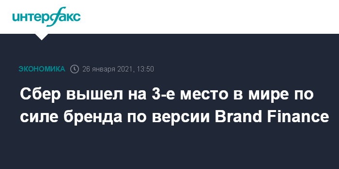 Москва. 26 января. INTERFAX.RU - "Сбер" вышел на третье место в рейтинге Brand Finance Global 500 по показателю "сила бренда" и занял первое место по этому показателю среди банковских брендов. Сравнительная сила бренда учитывает инвестиции в маркетинг и рекламу, акционерный капитал, а также результаты деятельности компаний.