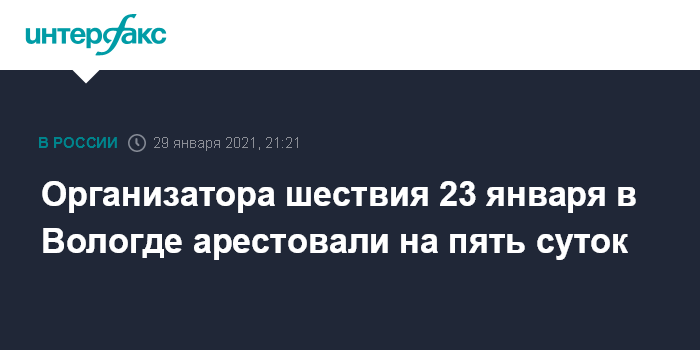 Организатора шествия 23 января в Вологде арестовали на пять суток