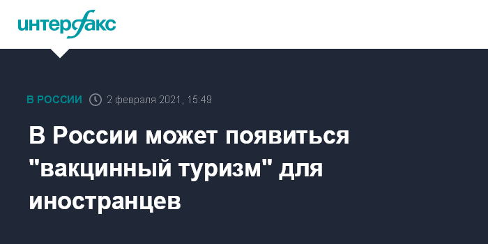Он отметил, что поездки "за вакциной" могли бы стать триггером для запуска въездного туризма в Россию, который сейчас на нуле из-за пандемии. Кроме того, можно было заполнить санаторно-курортные комплексы в межсезонье за счет иностранцев, которые будут проходить реабилитацию после заболевания COVID-19. Подойти к этому было бы оптимально осенью 2021 года.