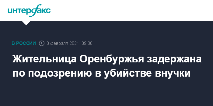 Жительница Оренбуржья задержана по подозрению в убийстве внучки