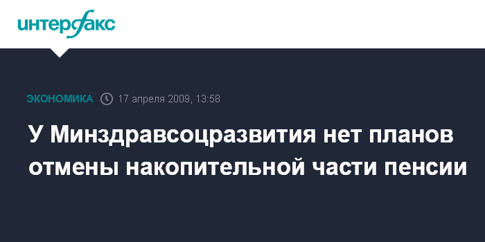 У Минздравсоцразвития нет планов отмены накопительной части пенсии