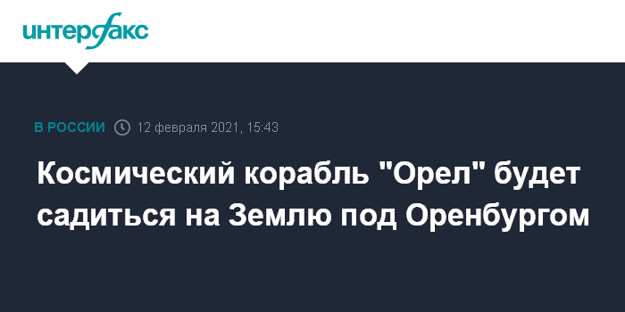 Москва. 12 февраля. INTERFAX.RU - Район посадки нового космического корабля "Орел" будет находиться под Оренбургом, сообщил генконструктор Центра эксплуатации наземной космической инфраструктуры Алексей Богомолов.