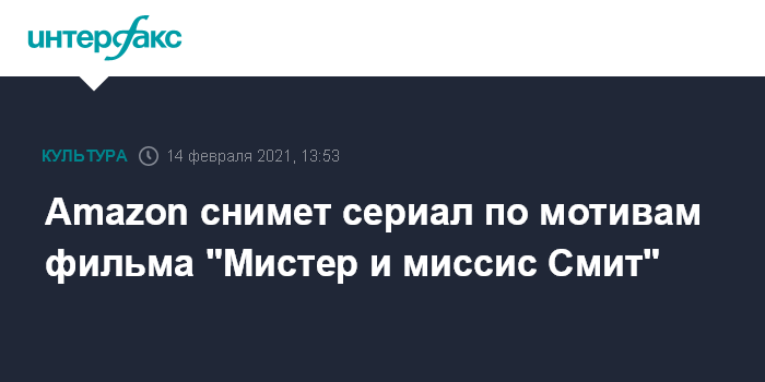 Москва. 14 февраля. INTERFAX.RU - Герои фильма "Мистер и миссис Смит" вернутся, но теперь уже в качестве персонажей сериала. Как сообщает "Би-би-си", перезапуск истории о супругах-киллерах выйдет Amazon Prime в следующем году.