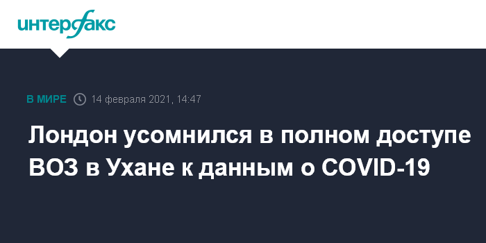 Москва. 14 февраля. INTERFAX.RU - Британские власти разделяют ранее звучавшие опасения по поводу того, обладала ли миссия Всемирной организации здравоохранения (ВОЗ) в китайском Ухане полным доступом к информации о начальной стадии пандемии коронавируса COVID-19, заявил в воскресенье глава МИД Великобритании Доминик Рааб.
