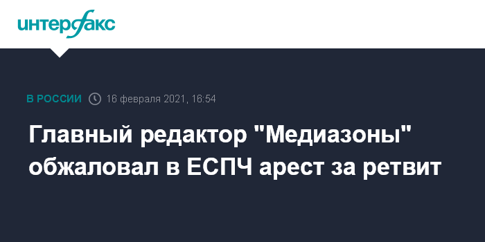 Главный редактор "Медиазоны" обжаловал в ЕСПЧ арест за ретвит