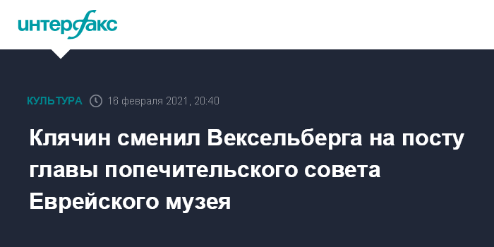Клячин сменил Вексельберга на посту главы попечительского совета Еврейского музея