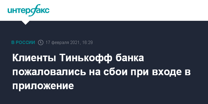 Москва. 17 февраля. INTERFAX.RU - Клиенты Тинькофф банка испытывают сложности при использовании мобильного приложения. Как сообщил "Интерфаксу" один из клиентов, он не смог войти в систему.