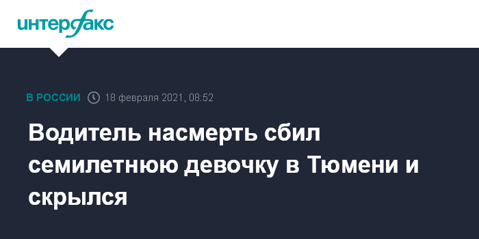 Водитель насмерть сбил семилетнюю девочку в Тюмени и скрылся