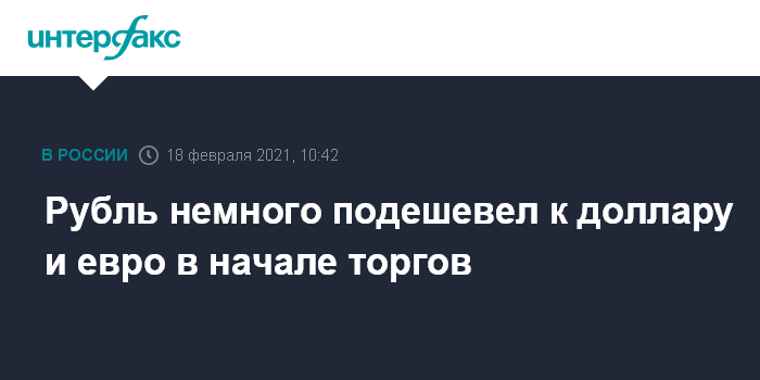 Как отмечают эксперты "Интерфакс-ЦЭА", рубль дешевеет к доллару и евро на старте торгов на фоне негативных сигналов с внешних рынков. В четверг торговые площадки материкового Китая возобновили работу после празднования Нового года по лунному календарю, и основные индексы бирж Поднебесной снижаются из-за выхода инвесторов из рисковых активов.