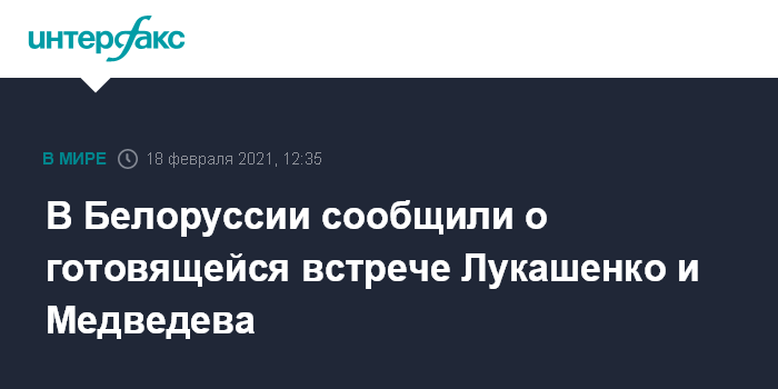 Ранее Лукашенко анонсировал встречу с президентом России Владимиром Путиным в 20-х числах февраля.