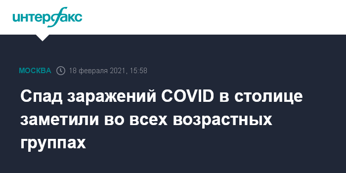 Москва. 18 февраля. INTERFAX.RU - В Москве наблюдается спад заболеваемости COVID-19 во всех возрастных группах, заявила заммэра столицы по вопросам социального развития Анастасия Ракова.