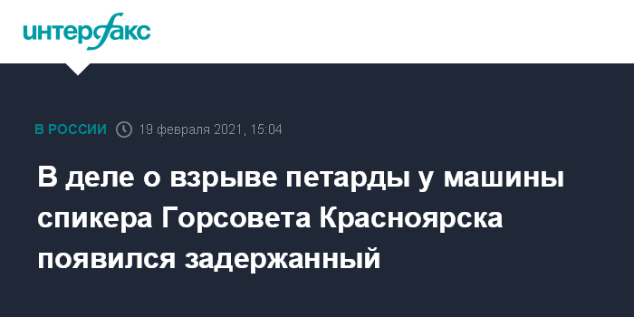 В деле о взрыве петарды у машины спикера Горсовета Красноярска появился задержанный