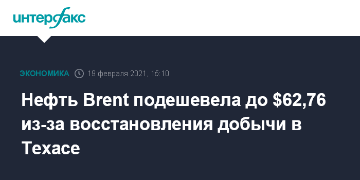Москва. 19 февраля. INTERFAX.RU - Цены на нефть эталонных марок в пятницу снижаются на фоне постепенного восстановления добычи в Техасе, ранее упавшей в условиях сильных морозов.