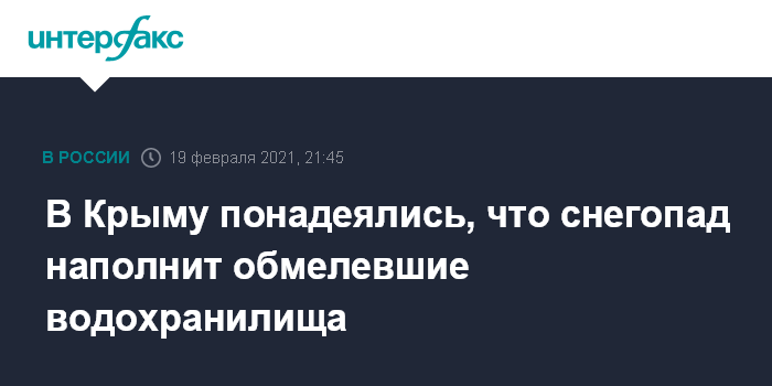 "Снега выпало достаточное количество. Это долго ожидаемый снег. Слава богу, что он выпал в таком объеме! Очень хорошо, что он выпал на всей территории республики, особенно в тех местах, где мы ожидаем этот снег – в местах снеготаяния, (это хорошо - ИФ) для наполнения наших водных резервуаров", - сказал крымский спикер в эфире телеканала "Россия 24" в пятницу вечером.